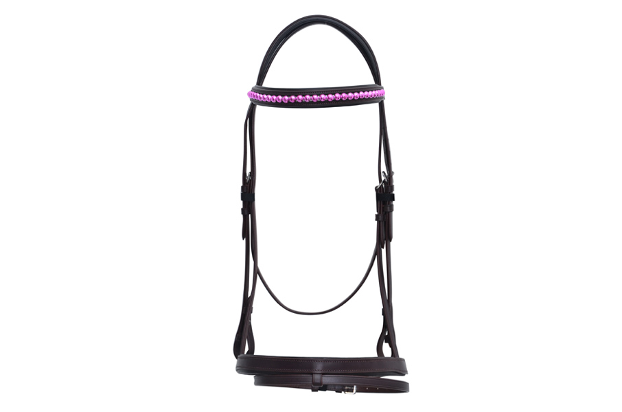 CHOLATE BROWN COLOR FANCY BRIDLE WITH PINK PEARL ON BROWWITHSS FITTINGS