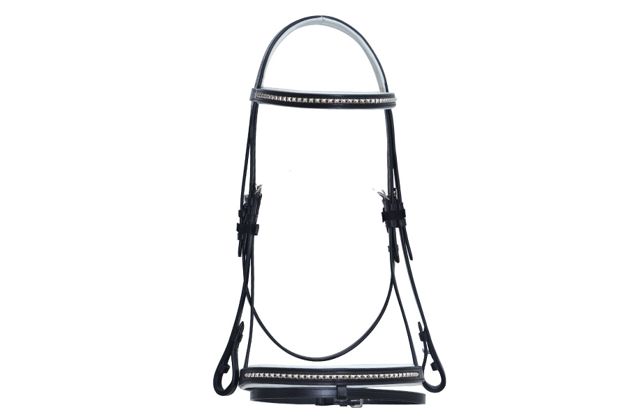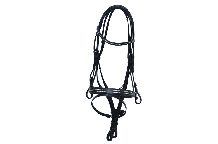 SOFT PADDED FANCY BRIDLE WITH SS FITTINGS AND WEB REINS AND SHAPED ON HEAD